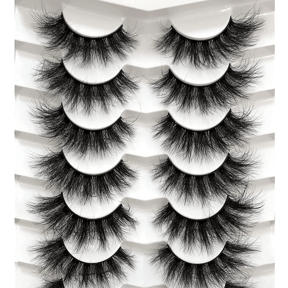 Pooplunch False Eyelashes Fluffy Mink Lashes Cat-Eye Look 18MM Wispy Long 8D Volume Fake Eyelash Strips 7 Pairs Pack!