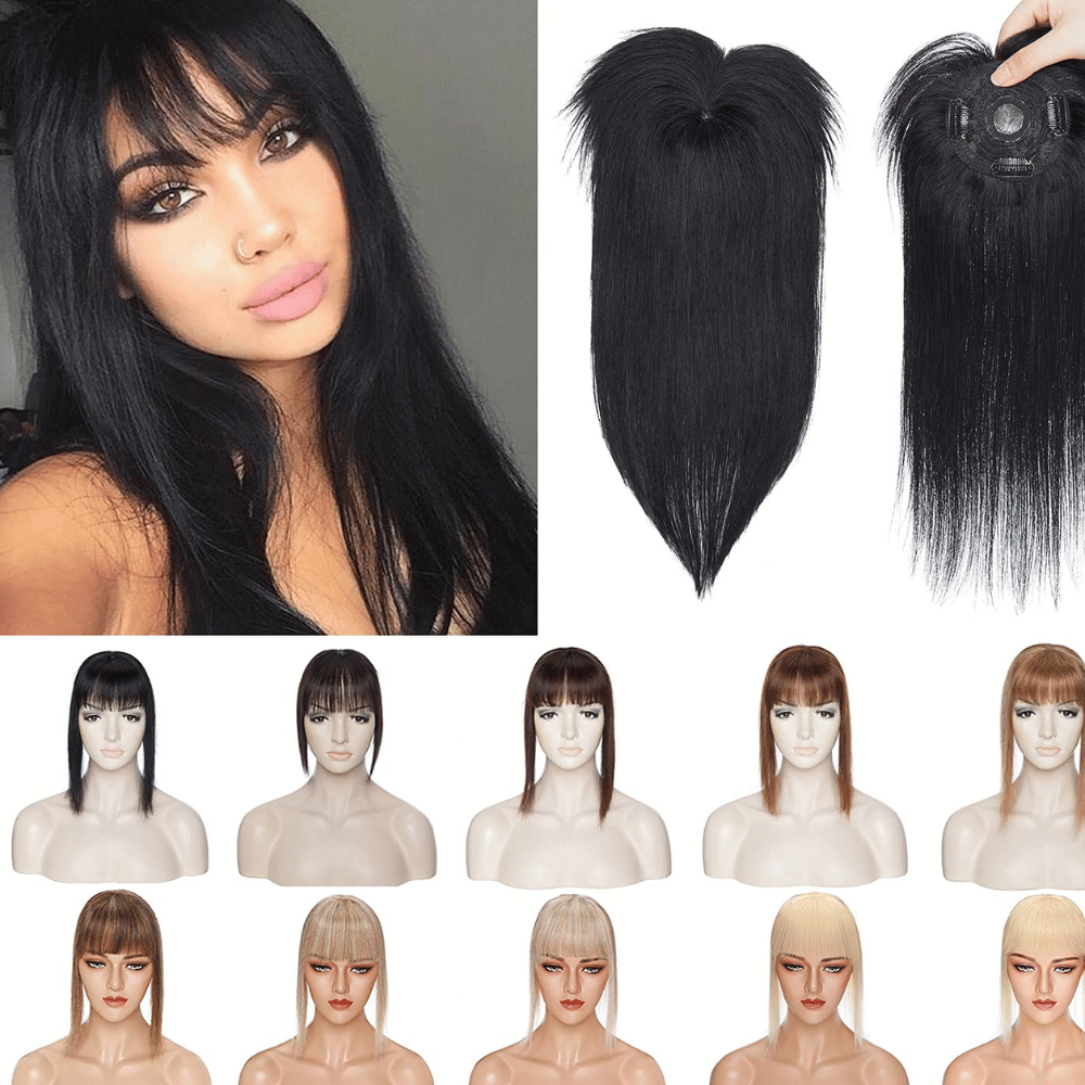 S-nobility 150% Density Human Hair Toppers with Bangs:
