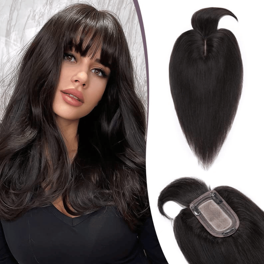 TESS Hair Toppers for Women, 100% Real Human Hair Toppers with Bangs: